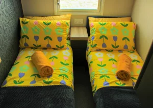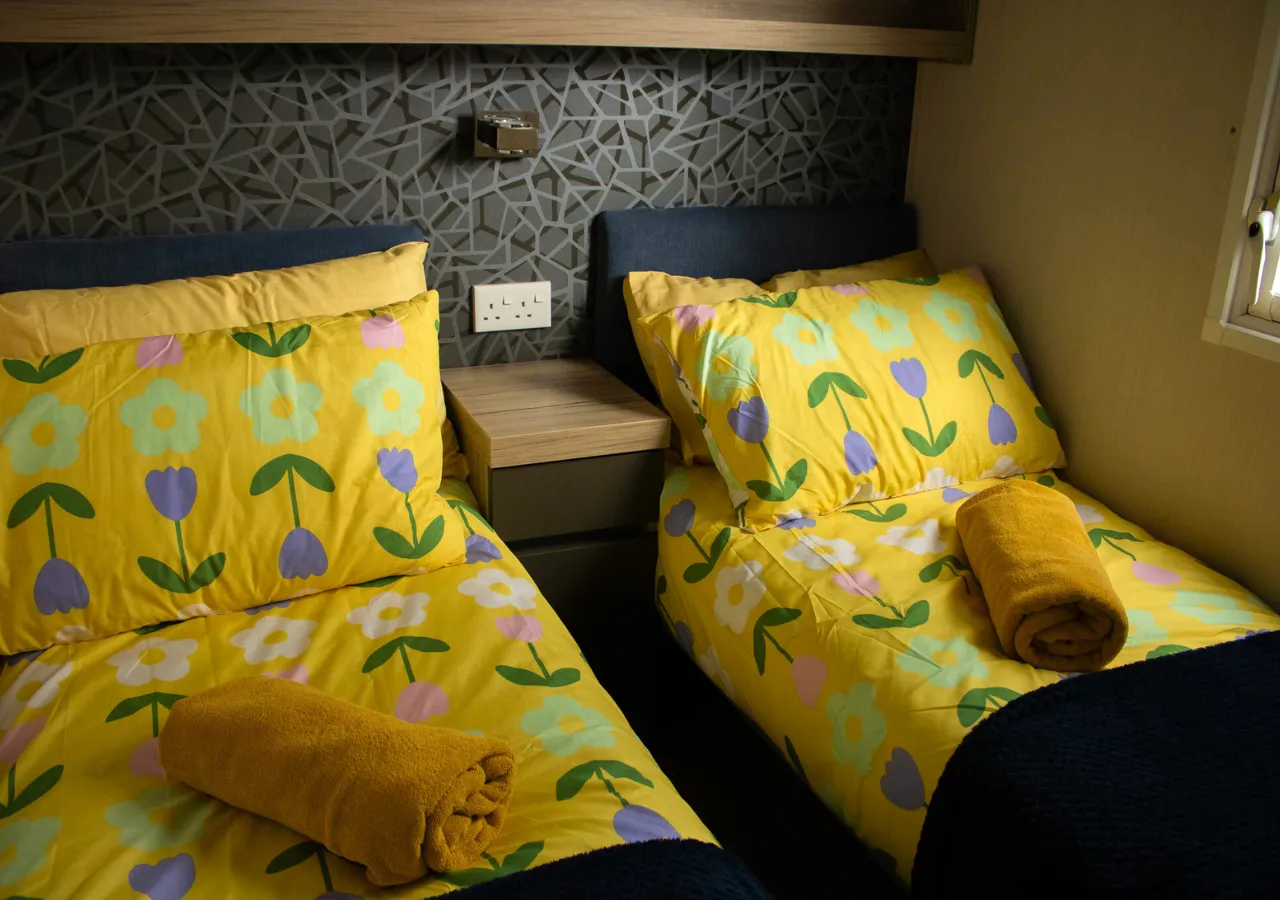 - High quality mattresses throughout with reading lights over beds and luxury soft furnishings